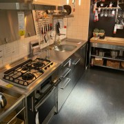 煌びやかに輝くヘアライン加工の銀色、耐久性、衛生面、どれを取ってもステンレスキッチンしかありませんでした。
